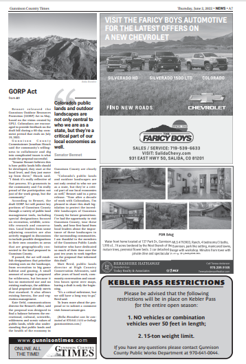 Bennet released the Gunnison Outdoor Resources Protection (GORP) Act in May, based on the vision created by GPLI. Coloradans are encouraged to provide feedback on the draft bill during a 60-day comment period that ends on July 19, 2022.